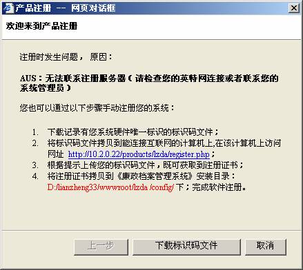 由于没有连上互联,不能在线注册,系统会出现下图,提示您离线注册。