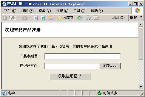 下载标识码文件并将其拷贝到另一台能够访问互联网的计算机(不用安装本系统)上。在该计算机上,打开浏览器,在地址栏中输入以下地址:http://www.sudesoft.cn/products/lzda/register.php,出现下图,